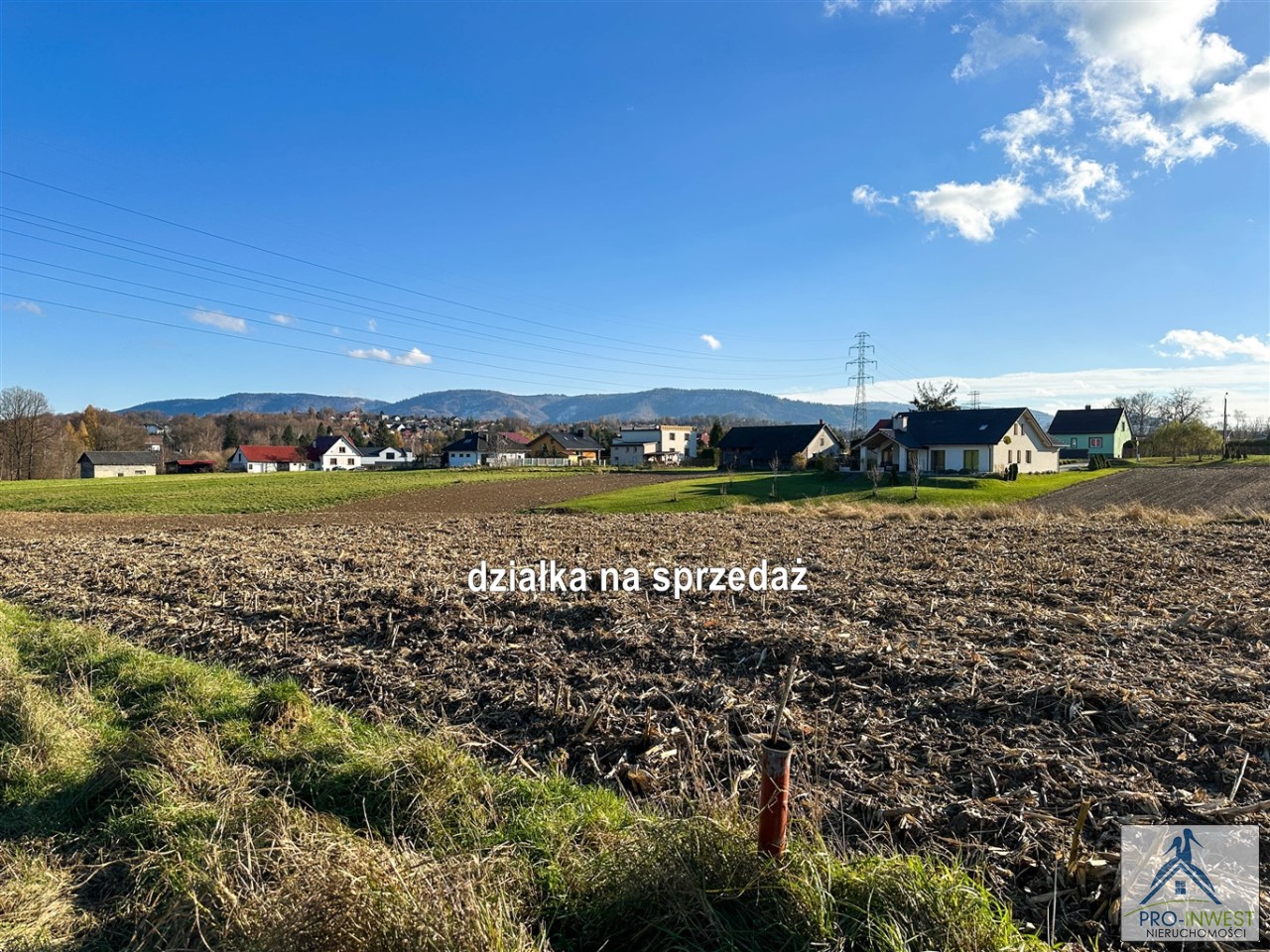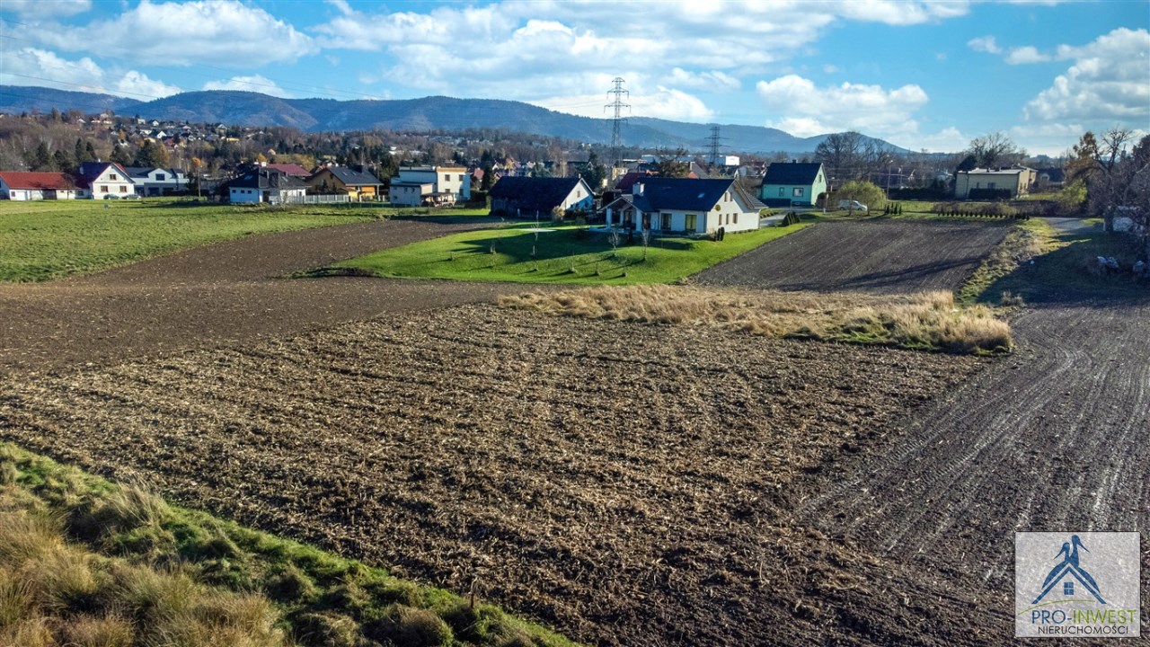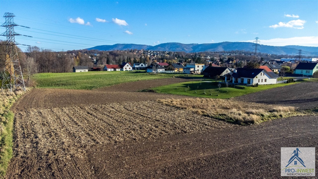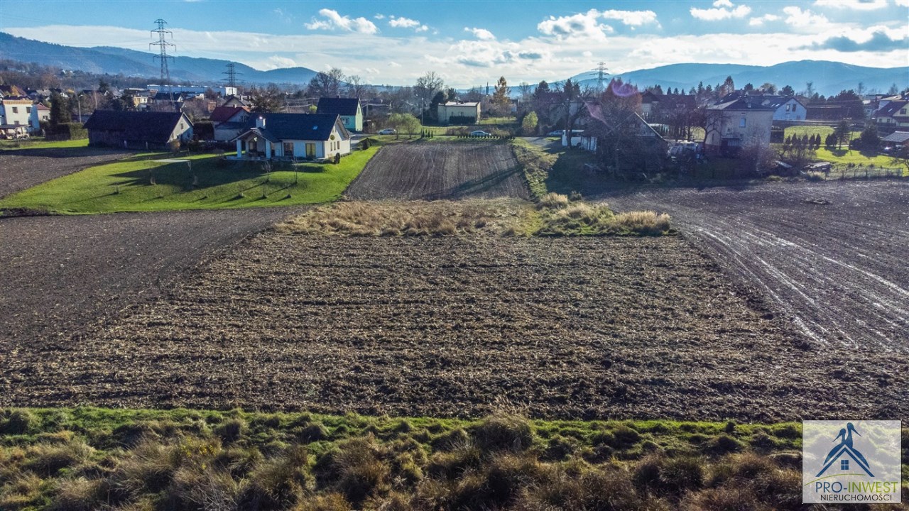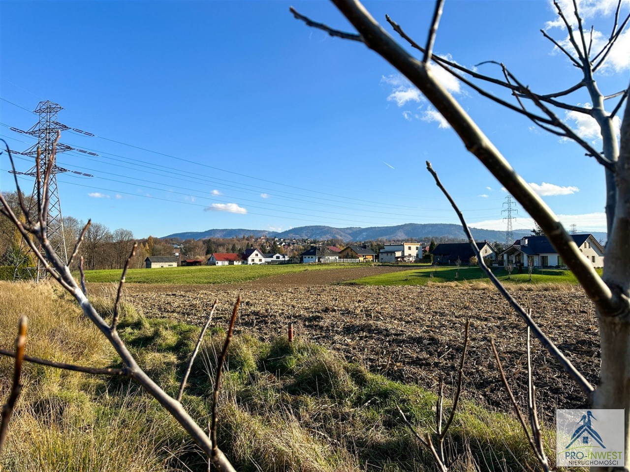 Prawie 10 arów terenu budowlanego dla domu jednorodzinnego, z doskonałym dojazdem, z górami na horyzoncie, blisko przystanku i z dostępem do mediów.