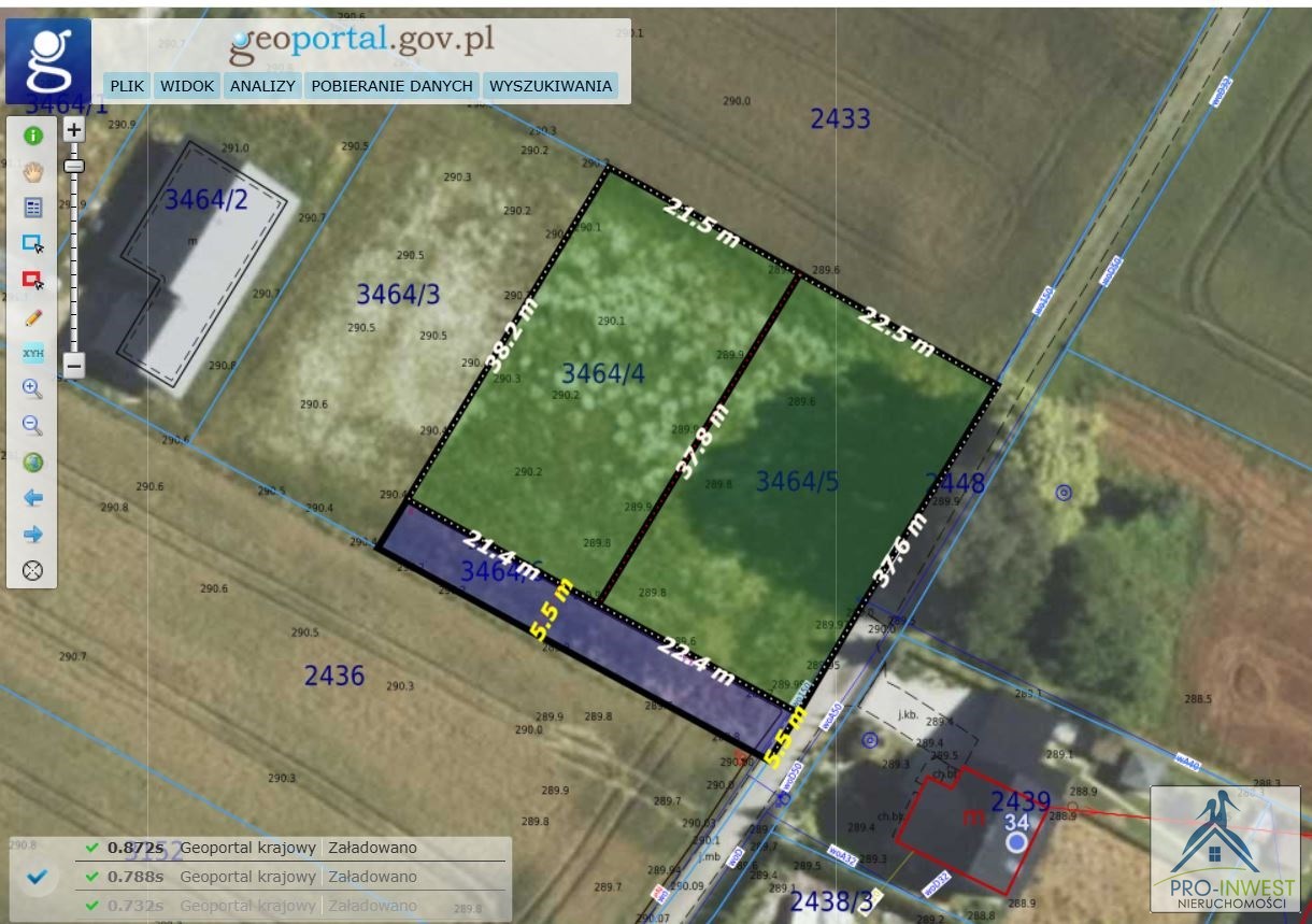 3464/4 o powierzchni 822 m² oraz 3464/5 o powierzchni 844 m² – sprzedawane razem jako jeden większy teren.